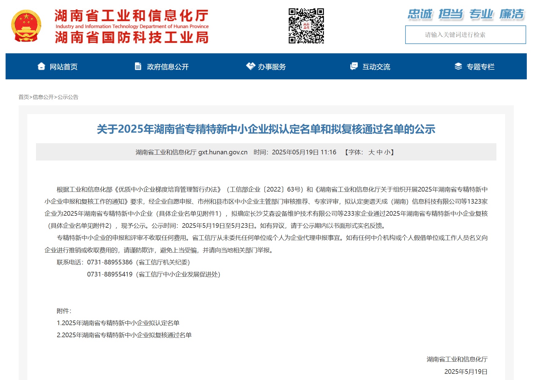 日前,湖南省工業(yè)和信息化廳公示《關(guān)于2025年湖南省專精特新中小企業(yè)擬認(rèn)定名單和擬復(fù)核通過名單》奧譜天成·集團(tuán)湖南子公司長期深耕光譜儀器制造與應(yīng)用領(lǐng)域,獲評湖南省專精特新中小企業(yè)。
