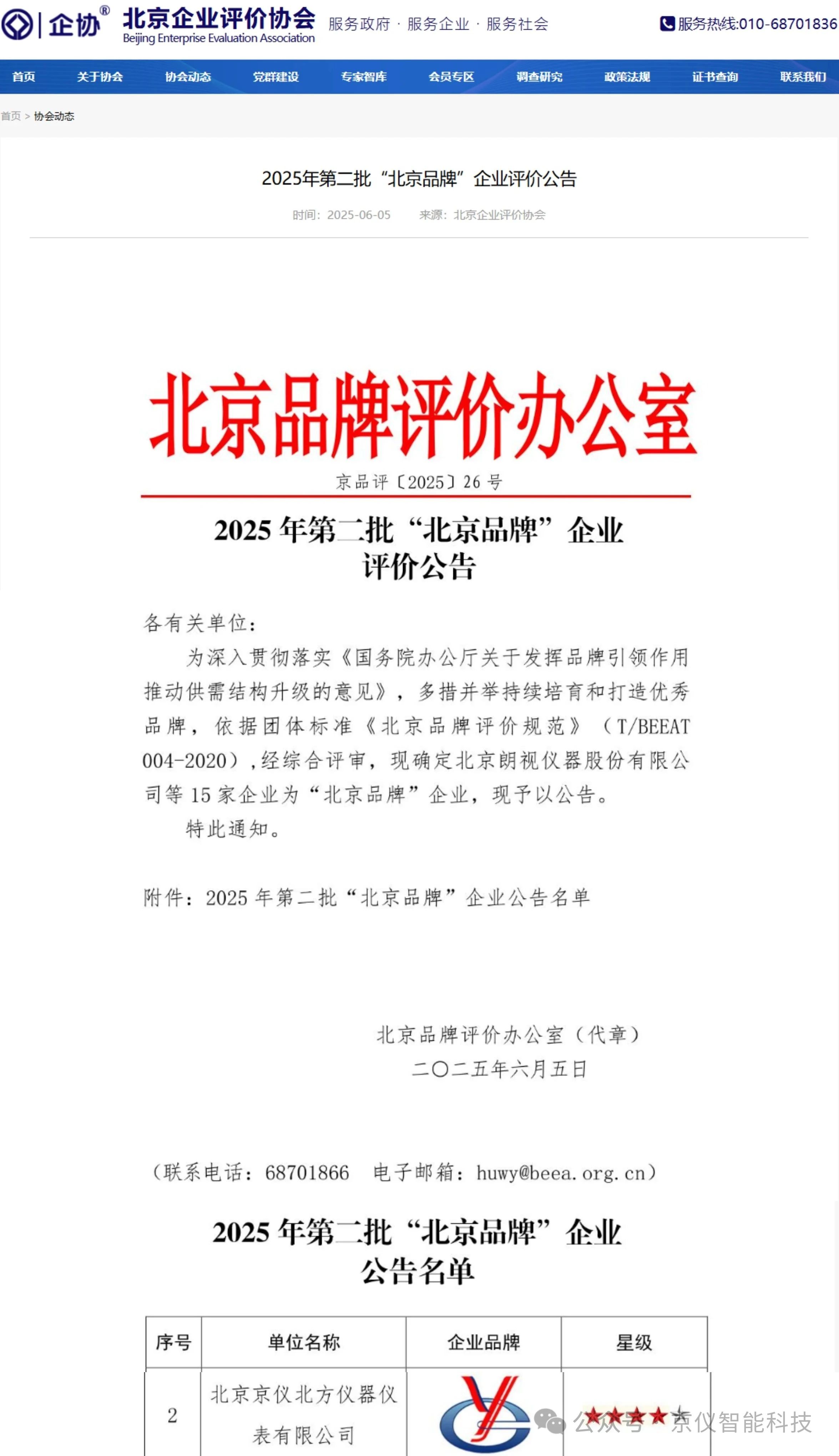 近日,北京品牌評價辦公室正式發布2025年第二批 北京品牌企業評價公告,京儀北方公司憑借突出的品牌創新實力和綜合競爭力,成功榮獲北京品牌企業四星級稱號。