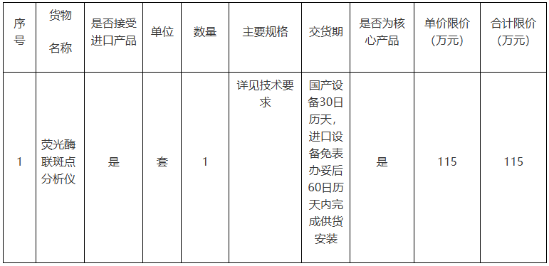 華中農業大學微生物資源庫建設項目第七批(熒光酶聯斑點分析儀) 招標項目的潛在投標人應在武漢市洪山區徐東大街徐東嘉園B2801獲取招標文件,并于202507300930分(北京時間)前遞交投標文件。