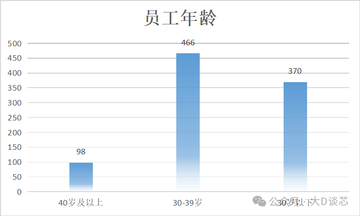 截至2025年3月31日,公司員工的年齡結(jié)構(gòu)情況:40歲及以上為98人(占比10.49%),30-39歲為466人(占比49.89%),30歲以下為370(占比39.61%)。