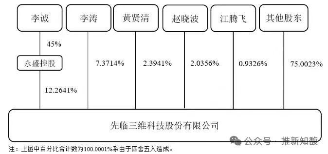 李濤、黃賢清、趙曉波、江騰飛通過與李誠簽署一致行動(dòng)協(xié)議方式,與李誠一起共同成為先臨三維的實(shí)際控制人,合計(jì)控制公司表決權(quán)比例為24.9977%。