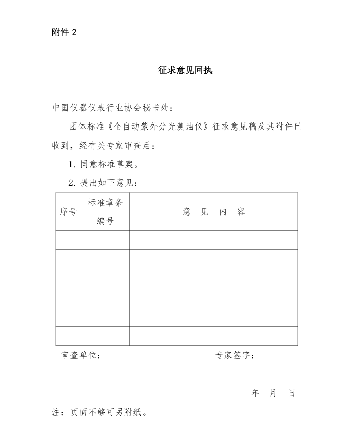 2. 征求意見回執(zhí)—— 全自動紫外分光測油儀