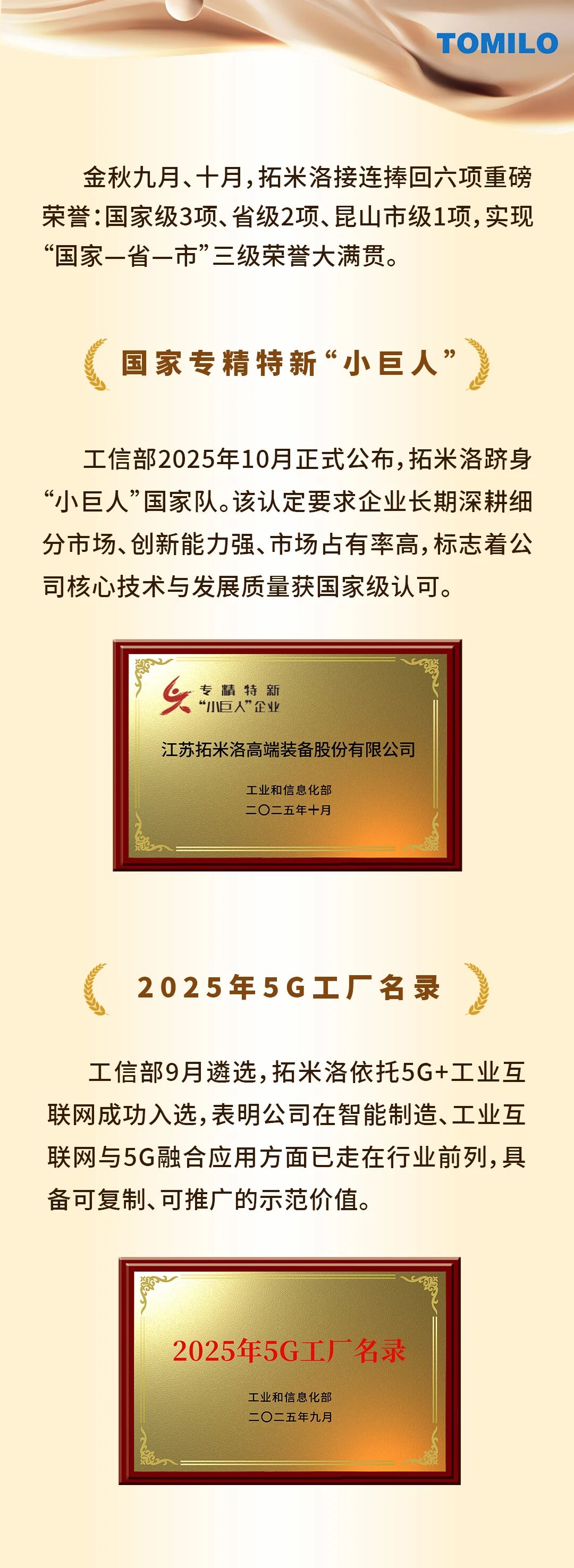 拓米洛公司榮獲多項(xiàng)國家級(jí)與省級(jí)榮譽(yù)