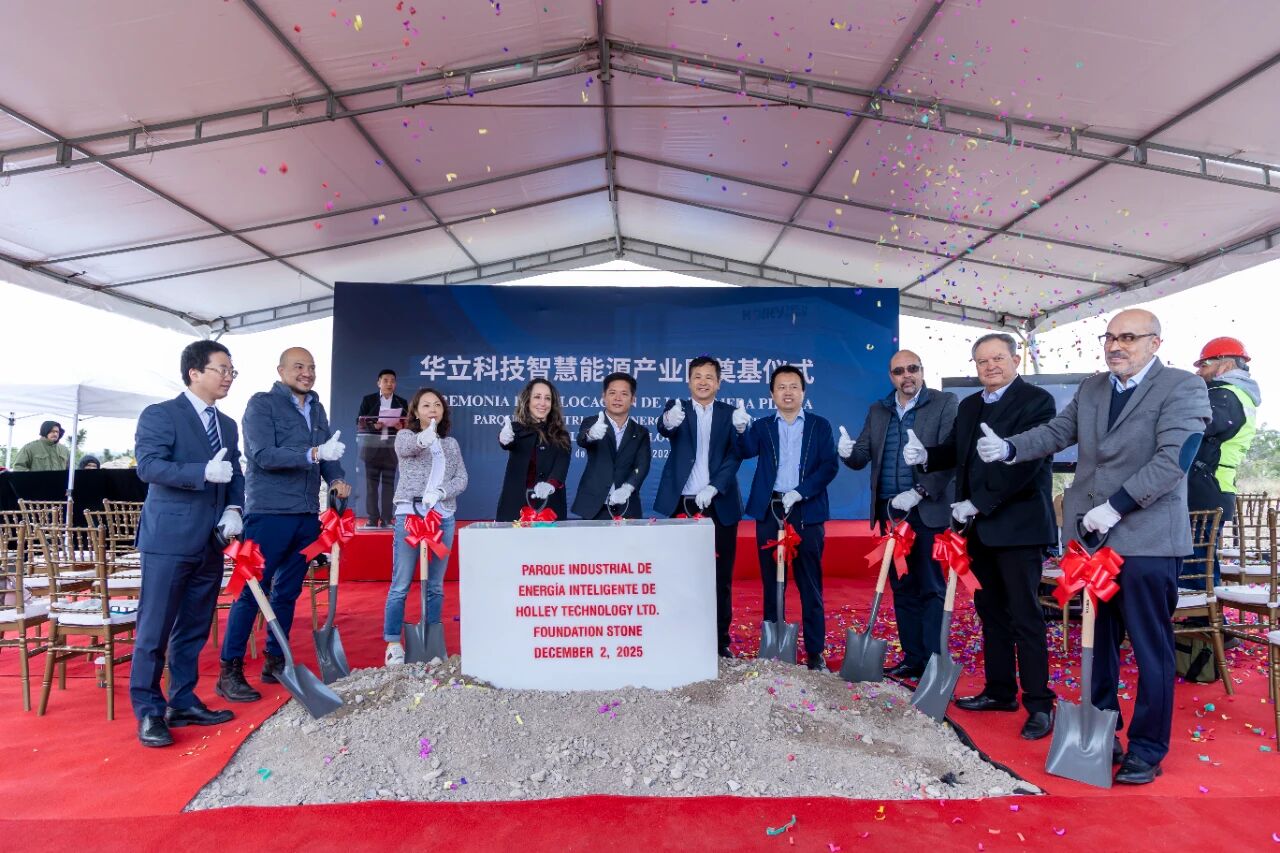當(dāng)?shù)貢r間2025年12月2日,華立科技墨西哥智慧能源產(chǎn)業(yè)園奠基儀式在新萊昂州蒙特雷華富山工業(yè)園順利舉行。華立科技董事長鐘祥剛出席并致辭,新萊昂州外商投資部主任Regina Sada Elizondo,來自CFE北部大區(qū)的代表,華立科技海外事業(yè)部總經(jīng)理黃云鵬、海外事業(yè)部市場總監(jiān)陳建鋒,以及華立海外和承建方代表共同參加此次奠基儀式。