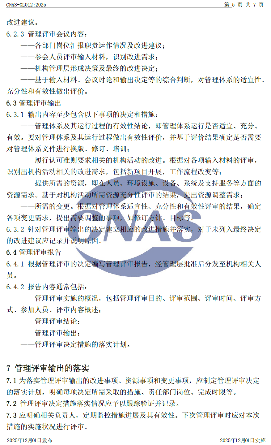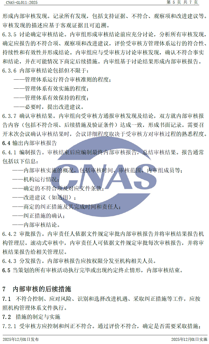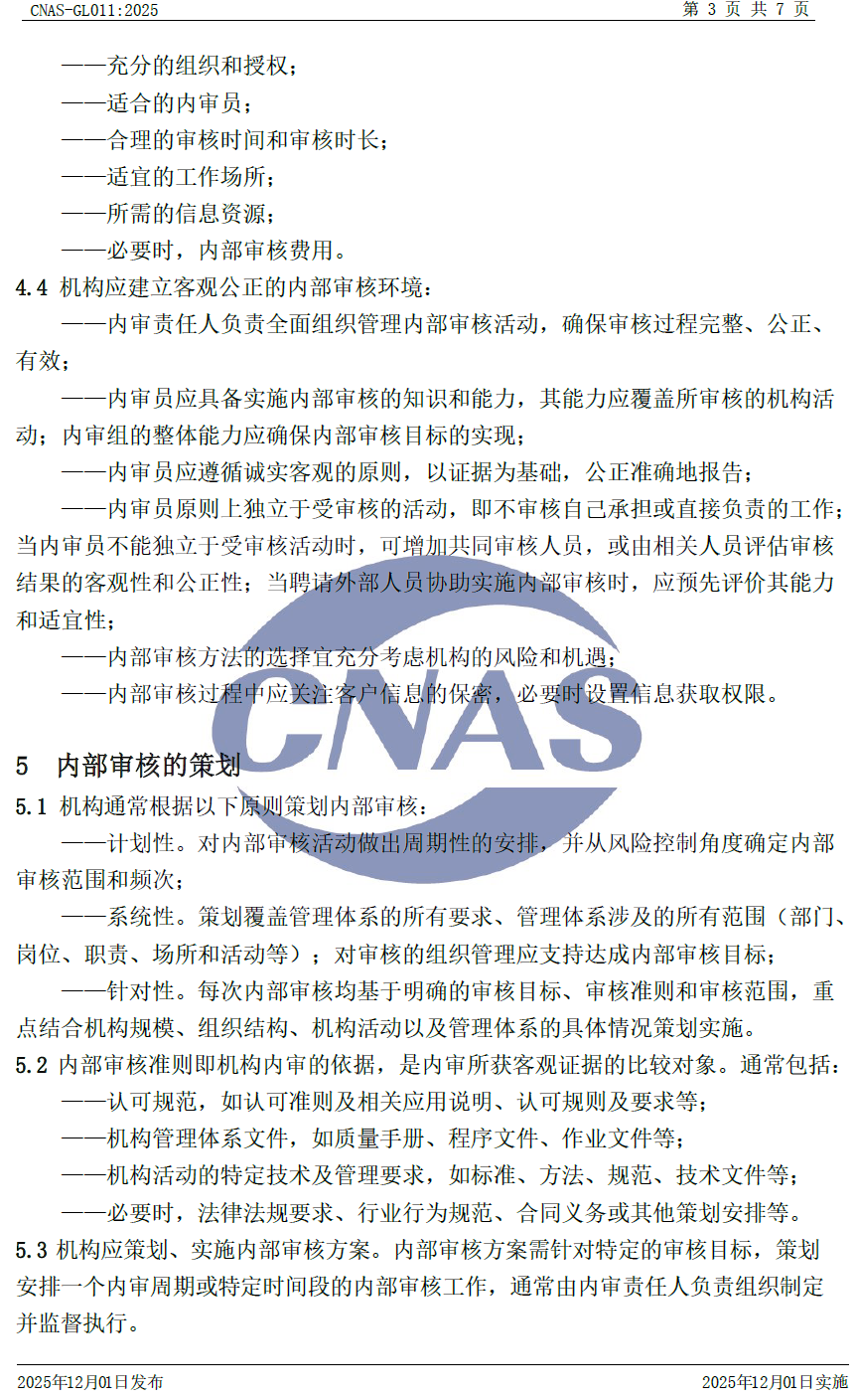 摘要:中國合格評定國家認可委員會(CNAS)近日發布CNAS-GL011:2025 《實驗室和檢驗機構內部審核指南》和CNAS-GL012:2025 《實驗室和檢驗機構管理評審指南》。兩份文件已于2025年12月1日正式實施。