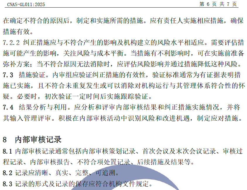 CNAS-GL0112025 《實驗室和檢驗機構內部審核指南》與CNAS-GL0112018相比,除結構調整和編輯性改動外,主要技術變化如下: