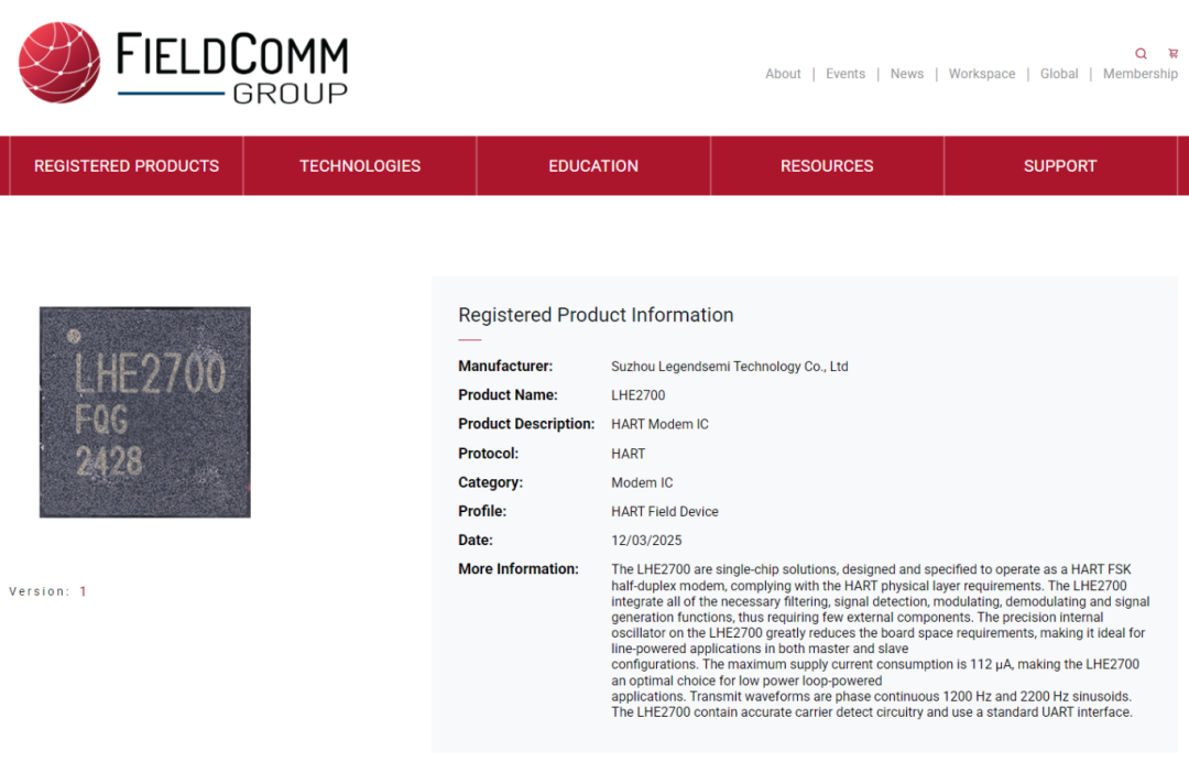 近日,領(lǐng)慧立芯旗下LHE2700 集成精密振蕩器的低功耗 HART 調(diào)制解調(diào)器,成功通過國際權(quán)威機(jī)構(gòu) FieldComm Group 的 HART® 通信協(xié)議認(rèn)證。這一里程碑式的突破,不僅標(biāo)志著 LHE2700 在工業(yè)通信協(xié)議兼容性、技術(shù)可靠性上達(dá)到國際標(biāo)準(zhǔn),更意味著國產(chǎn)工業(yè)級(jí)模擬芯片在關(guān)鍵領(lǐng)域?qū)崿F(xiàn)了與國際先進(jìn)水平的精準(zhǔn)對(duì)標(biāo),為工業(yè)自動(dòng)化設(shè)備的國產(chǎn)化升級(jí)注入強(qiáng)勁 “芯” 動(dòng)力。