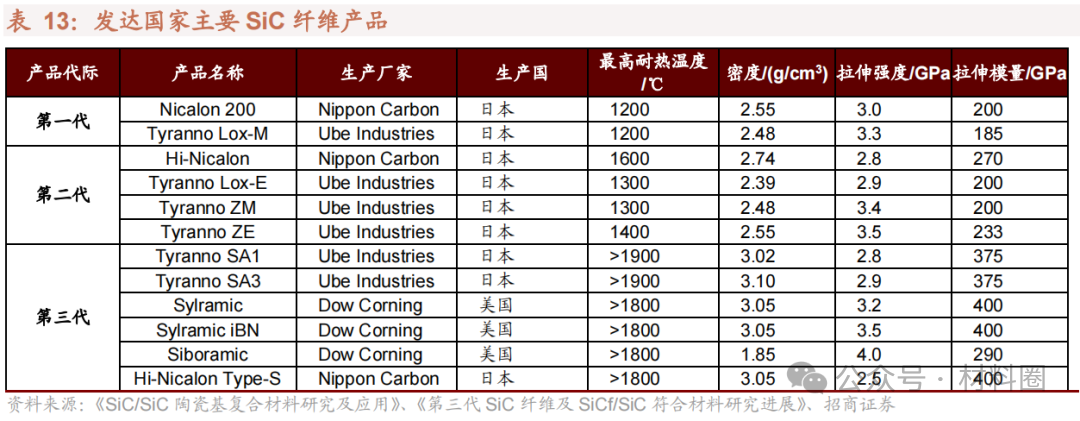 2)碳化硅纖維:在西方國家的技術(shù)封鎖下,我國第三代SiC纖維產(chǎn)業(yè)化仍處于起步階段