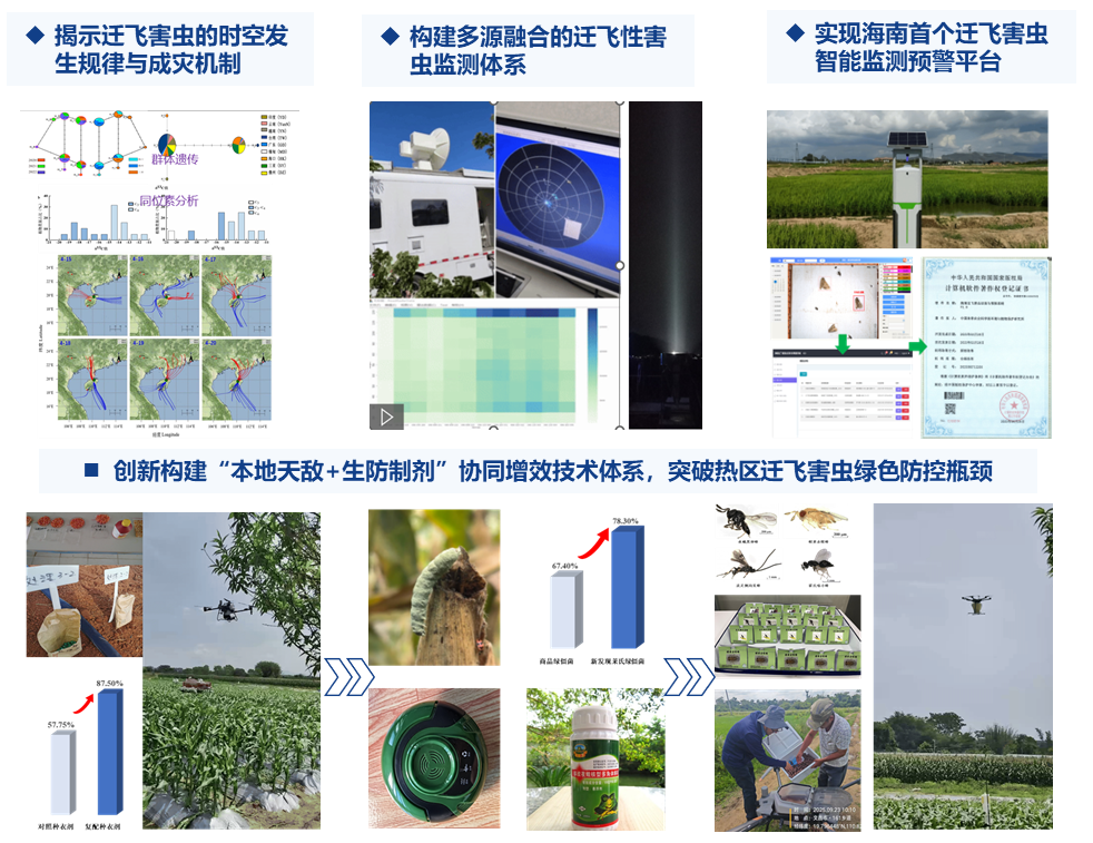 海南作為我國熱帶農(nóng)業(yè)核心產(chǎn)區(qū)與南繁種業(yè)基地,重大遷飛害蟲的頻繁侵?jǐn)_,一直是制約農(nóng)業(yè)高質(zhì)量發(fā)展的關(guān)鍵瓶頸。此次獲獎(jiǎng)項(xiàng)目——“海南重大遷飛害蟲智能監(jiān)測(cè)及精準(zhǔn)防控關(guān)鍵技術(shù)創(chuàng)新與集成應(yīng)用”正是聚焦這一痛點(diǎn),系統(tǒng)解析草地貪夜蛾、稻飛虱等在海南的發(fā)生規(guī)律和遷飛機(jī)制,形成“監(jiān)測(cè)—預(yù)警—防控”一體化技術(shù)模式,為熱帶農(nóng)業(yè)綠色發(fā)展筑牢科技屏障。