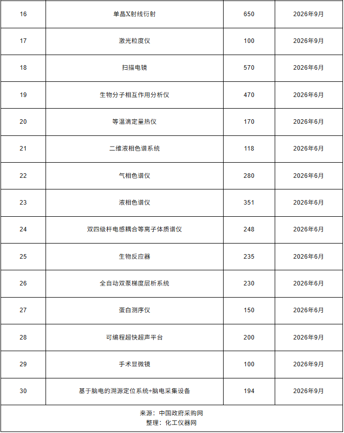 近日,南京醫科大學發布20262(2)政府采購意向公告,計劃采購毛細管電泳色譜儀、測序儀、便攜式近紅外腦成像系統、激光共聚焦顯微鏡、蛋白檢測分析儀、X射線粉末衍射儀等儀器設備,總預算9364萬元,預計采購時間20266~9月。