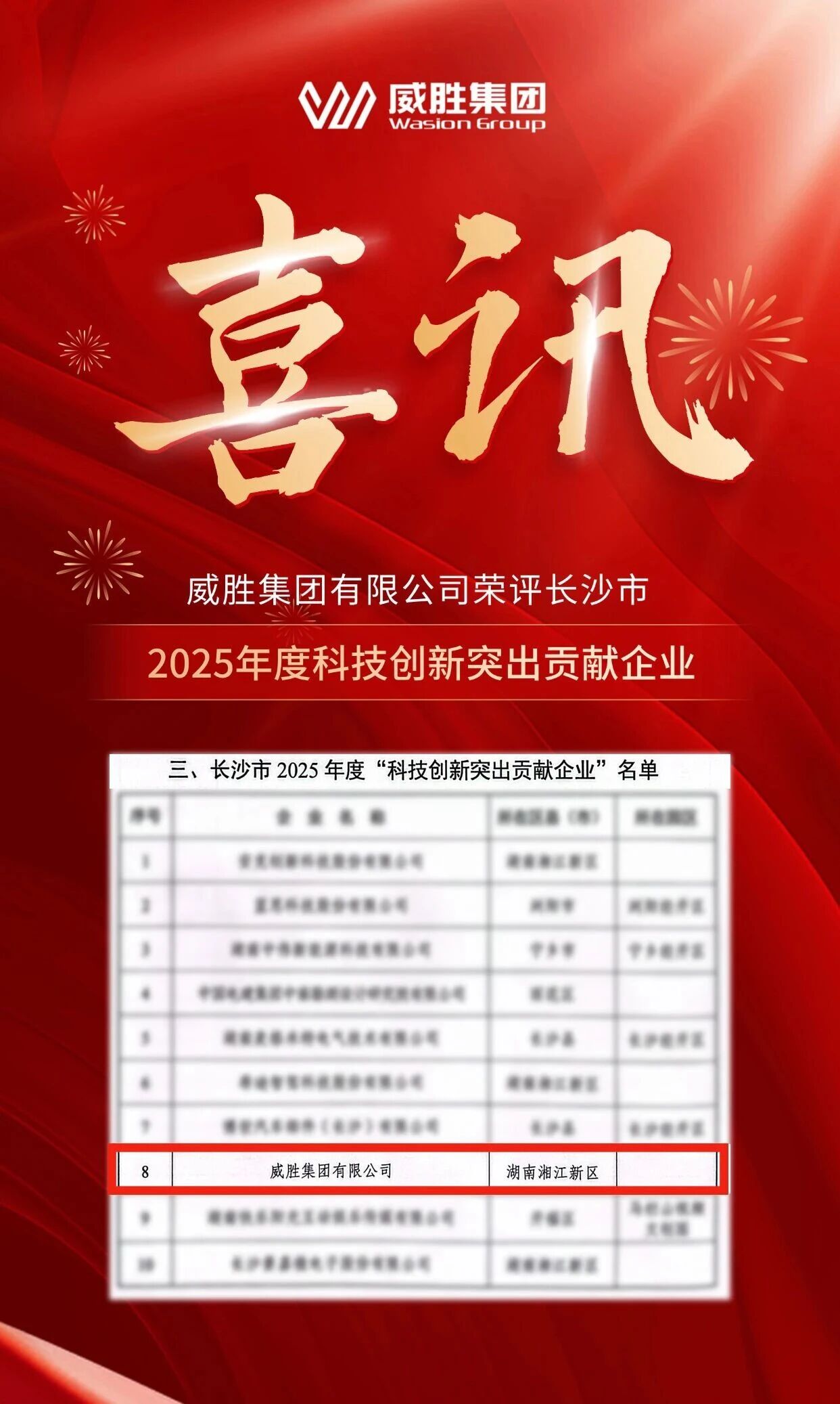 會上發(fā)布了長沙市2025年度“經(jīng)濟質(zhì)效突出貢獻企業(yè)”“工業(yè)強市突出貢獻企業(yè)”“科技創(chuàng)新突出貢獻企業(yè)”“消費引領突出貢獻企業(yè)”名單,每個名單僅10家企業(yè)上榜。威勝集團有限公司榮評長沙市2025年度“科技創(chuàng)新突出貢獻企業(yè)”。