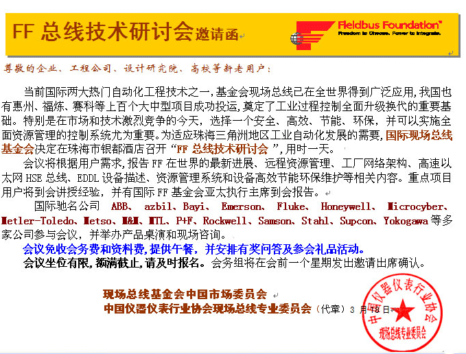 FF總線技術研討會邀請函